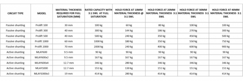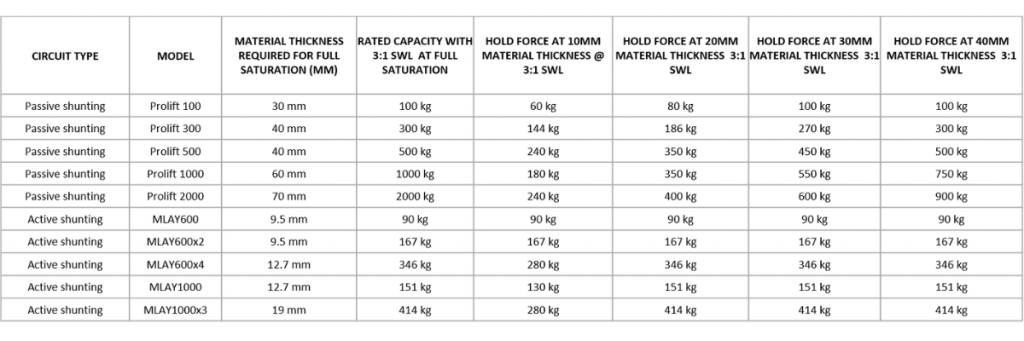 Some magnets are geared towards lifting thin material (Active shunting) and some thicker material (Passive Shunting).